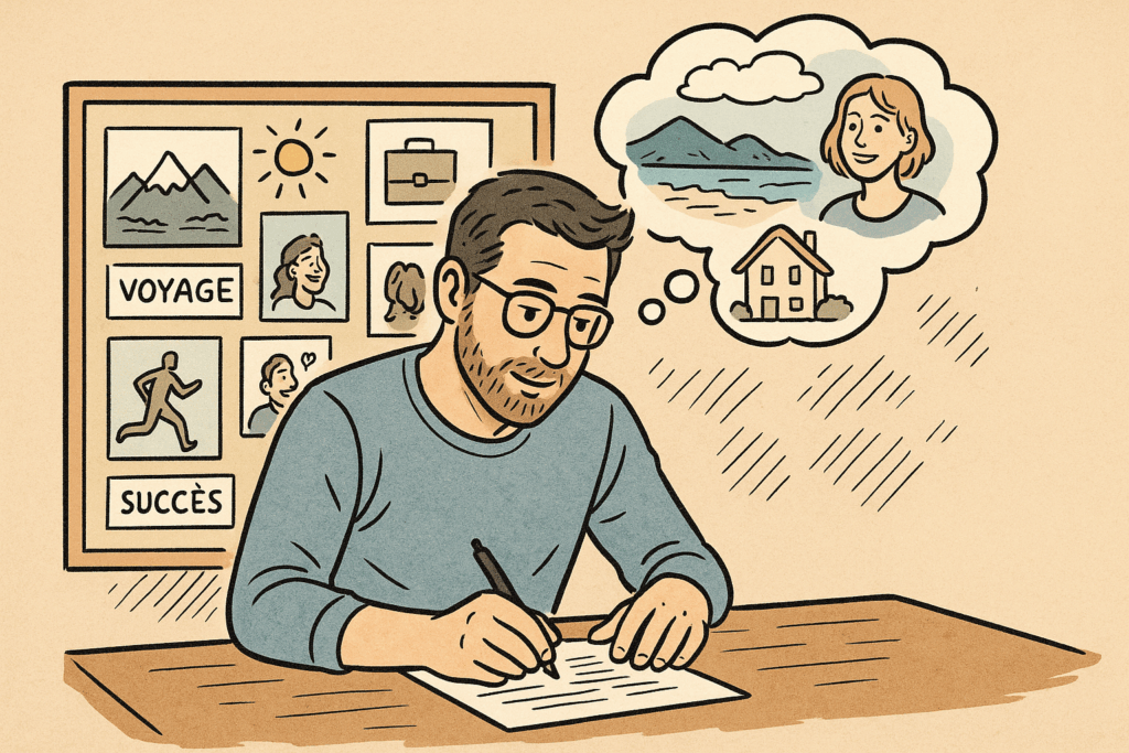 ECRIRE MON PREMIER VISION BOARD Faire un vision board est le premier conseil donné par tous les plus grand conférencier de développement personnel. Cet exercice permet de définir ce que tu souhaites vraiment accomplir dans ta vie et ainsi connaître le chemin a emprunter pour l’atteindre. Ce tableau de rêves doit toujours être visible pour